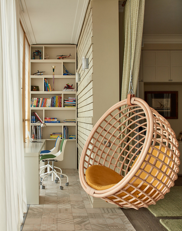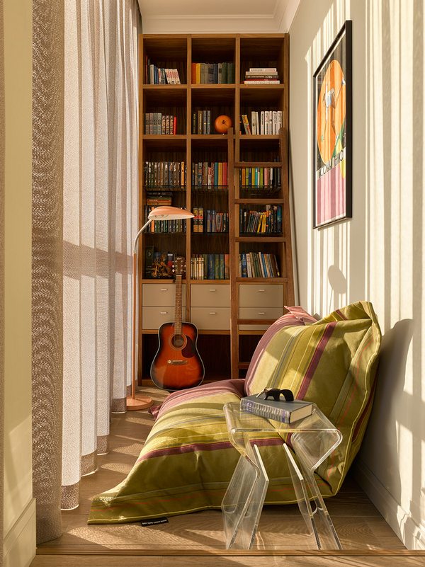 А вот и обещанная лаунж-зона с собственной библиотекой на балконе: