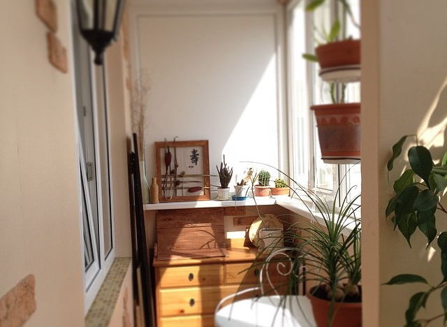 Собственный кабинет на балконе тоже довольно-таки удачная идея. Посмотрите, как удобно вам будет работать в такой уютной обстановочке!