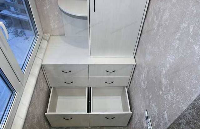 Выбирая шкафчик на балкон, первым делом решите сами для себя: будет это встроенный шкаф, конструкция с выдвижными ящиками или просто стеллаж. Поверьте, это очень важно!