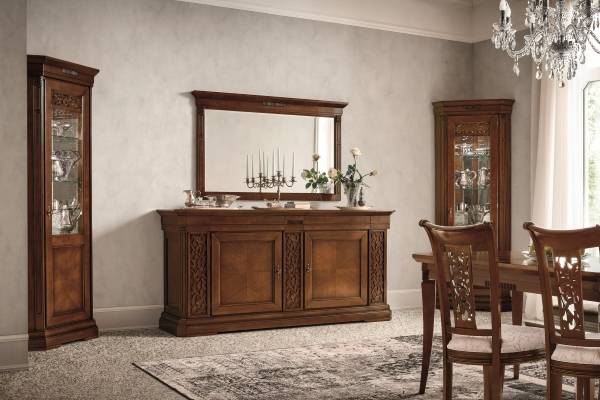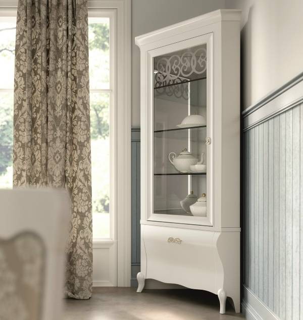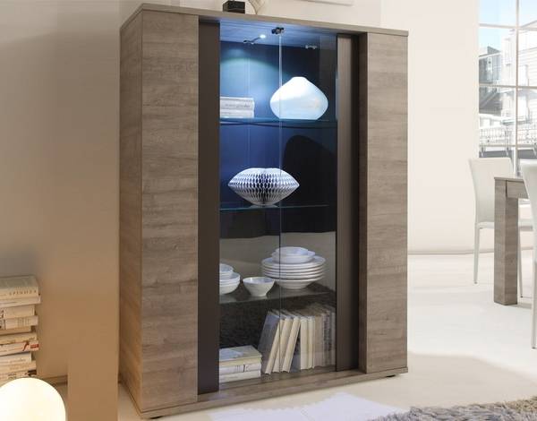 Шкаф витрина, которая предназначается для отображения объектов только через одну сторону, то есть через прозрачные дверцы, обычно ставится у стены и используется для хранения посуды. Сегодня её часто называют сервант витрина для гостиной.