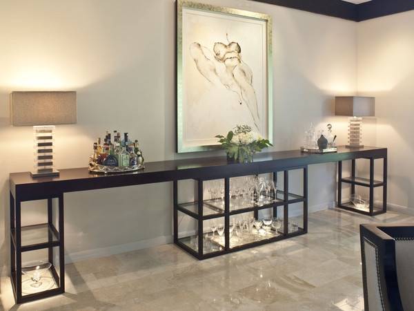 В отдельных случаях в роли витрины даже может выступить стол консоль. А почему бы и нет?