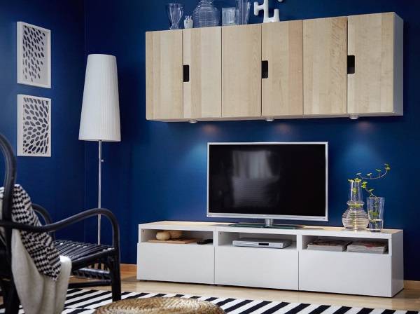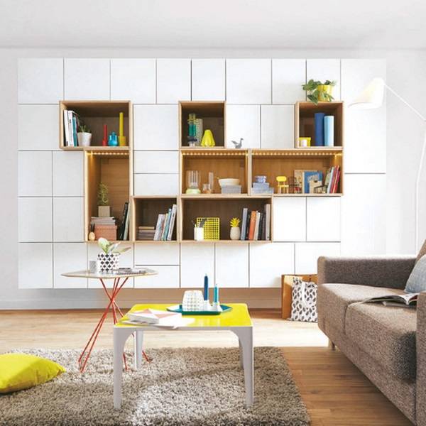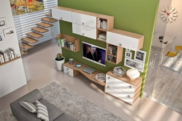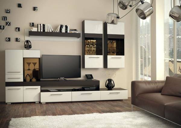 Отметим, что на рынке предложений можно найти узкие, длинные, горизонтальные, вертикальные навесные шкафы, а также прямые и угловые модели разной глубины, с помощью которых вы легко сделаете интерьер гостиной интересным и современным.