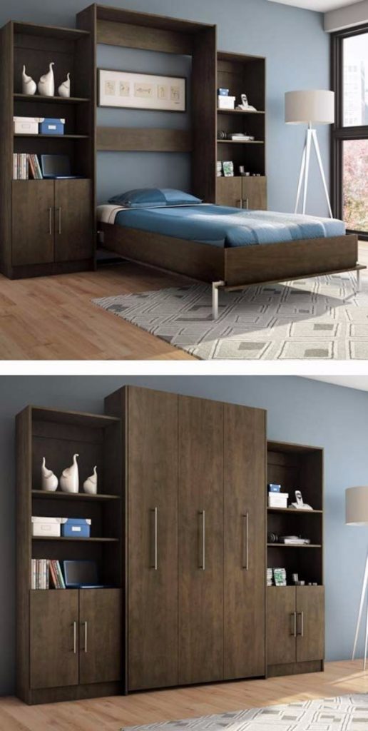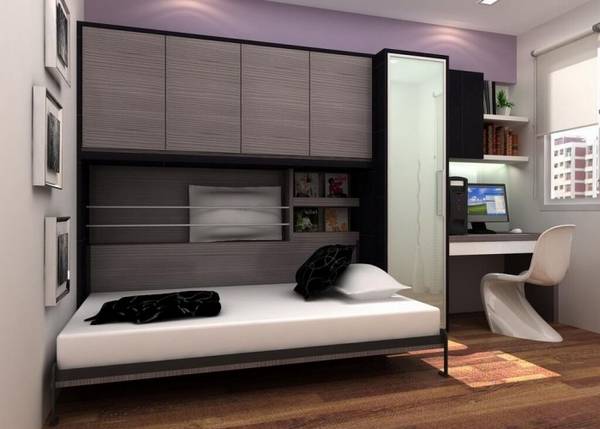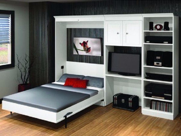 Прежде всего, необходимо отметить, что огромным плюсом такого вида мебели, как кровать, встроенная в шкаф, является ее способность экономить пространство путем быстрого преобразования. Как правило, такие кровати оснащены даже специальными ремнями, фиксирующими постельное белье на своем месте, и оборудованными нишами для подушек и одеял. Сегодня существует множество моделей откидных кроватей, встроенных в шкаф. Наиболее простым вариантом (и, следовательно, наиболее бюджетным) станет модель «шкаф кровать диван», представляющая из себя коробку под кровать с небольшим диваном, выполняющим функцию полки под спальным местом. Более усложненные интерпретации включают в себя дополнительные блоки мебели, такие как целые стенки, полки, компьютерные столы и прочее. Размеры основного спального места варьируются также в разных моделях. Естественно, чем больше усовершенствований в той или иной модели — тем будет выше на нее цена.
