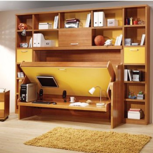Для детской комнаты шкаф кровать будет наиболее приемлемым выбором. В первую очередь, такое решение позволит создать ребенку большее пространство для игр, особенно, если к малышу придут гости. Детям всегда будет где порезвиться. Мамам же этот вариант понравится тем, что не придется постоянно наблюдать незастеленное спальное место, а также постельное белье будет постоянно в опрятном состоянии. Шкаф кровать для детской комнаты может быть торцевой (с поднимающимся вверх ложем), боковой (складываемой по широкой части) и выдвижной. Торцевой вариант имеет недостаток в том, что складывать такую кровать придется взрослому члену семьи, а с боковым типом ребенок в состоянии справиться самостоятельно.