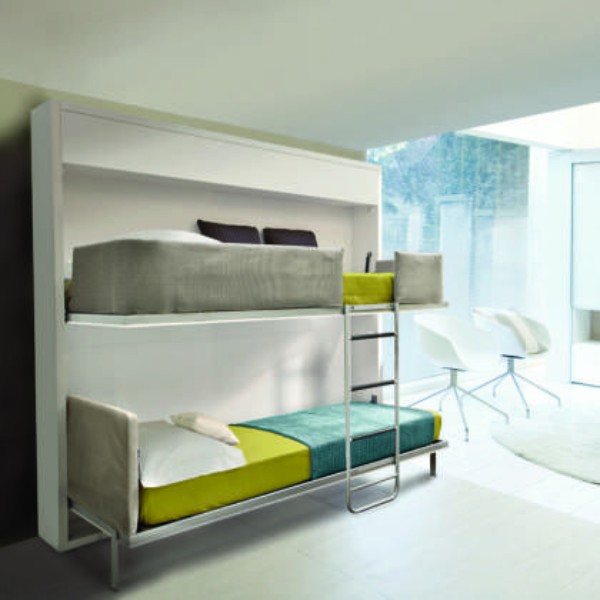 Для семей, где есть двое детей и более, стоит обратить внимание на модели двуспальных кроватей, где два ложа с помощью одного механизма приобретают другое дизайнерское решение, а приставная лестница играет роль, своего рода, опоры для всей конструкции. В дневное время такая мебель может быть преобразована в стол или шкаф, образуя тем самым дополнительное пространство. Кроме всего прочего, стоимость двуспального типа будет ниже, чем приобретение двух односпальных кроватей.
