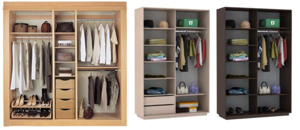 Планировка шкафа купе внутри: на две и три двери