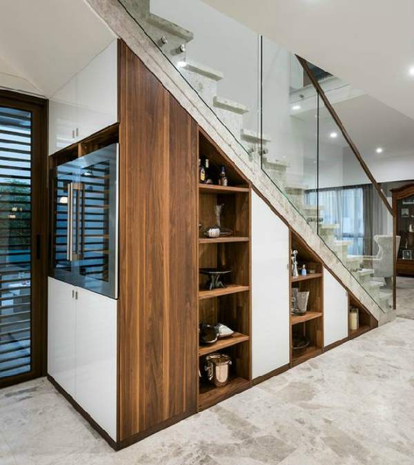 Стоит только проявить фантазию, и пустующее пространство под лестницей превратится в гардеробную, книжную полку, кладовку, шкаф для обуви или даже винный погреб! Смотрите и вдохновляйтесь.