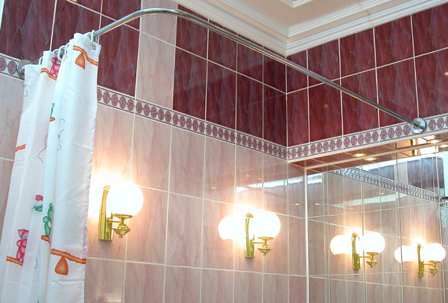 Карниз необходимо подбирать, ориентируясь на остальные предметы сантехники (например, смеситель) и общий стиль ванной комнаты
