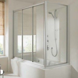 Кроме того, раздвижная перегородка может быть установлена и на ванне, которая чаще всего занимает всю длину ванной комнаты от одной стены до другой.
