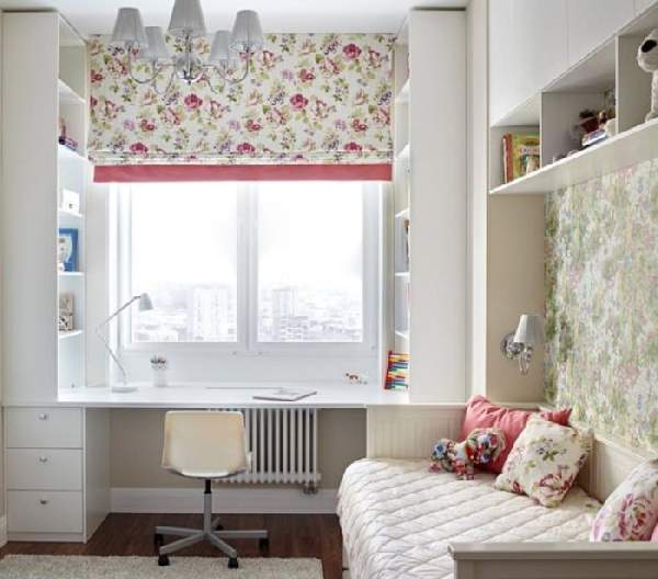 Замечательно подходит для оформления девичьих спален стиль прованс, где текстиль играет не последнюю, а даже ведущую роль. Дизайн штор для детской комнаты для девочки допускает в этом случае вставки из кружев, вышитые элементы, цветочные рисунки. Намного реже встречается минималистическое направление, но, все же, оно имеет место. Прямые белые рулонные модели будут здесь самым удачным вариантом.