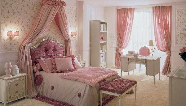 Переходный возраст вносит свои коррективы оформления дизайна комнаты в целом, а также отдельных его элементов. Нередко интерьер оформляется с учетом того или иного стилистического направления. Шторы в детскую комнату для девочек в классическом стиле предполагают длинные завесы, как вариант, комбинирующиеся с короткими римскими полотнами. Цвет ткани подбирается в тон отделки, как правило, белых, бежевых оттенков с традиционным клетчатым рисунком, полоской или однотонные.