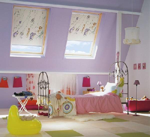 Что касается цветовой палитры, римские шторы в детскую комнату для девочки предпочтительны несколько темнее или светлее общей отделки, чтобы они вносили контраст. Хорошо, если соблюдено сочетание цветовой палитры относительно другого текстиля: мягких подушечек, покрывал.