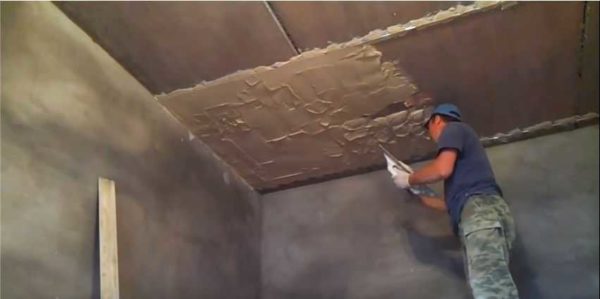 Нанесение и выравнивание штукатурки на потолке
