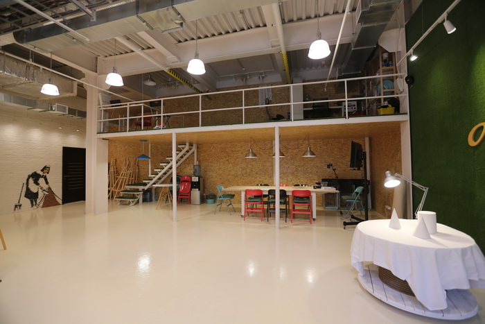 В студии присутствует и типичная для лофта антресоль, которая в основном используется работниками и преподавателями студии. Антресоль, между прочим, вся в траве, так что можно здесь и босиком ходить, и даже лежать!