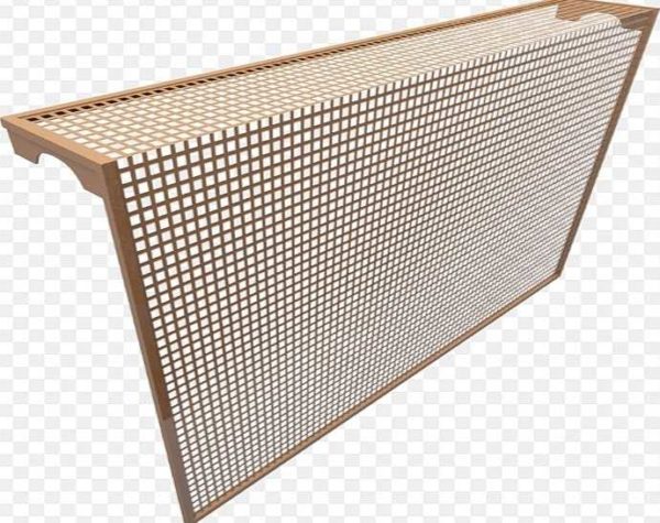 • МДФ и ХДФ. Для изготовления используют ламинированные листовые материалы. Стазу стоит сказать, что при производстве МДФ и ХДФ не используются связующие вещества. Размягченные древесные волокна прессуются, в процессе выделяется лигнин — натуральное связующее, содержащееся в древесине. Лигнин и склеивает волокна. Так что оба эти материала абсолютно безопасны. Если изделия из МДФ мы более-менее хорошо знаем, то ХДФ для многих незнакомый материал. Отличается он от МДФ только условиями прессовки. Его формуют под более высоким давлением, в результате получается он совсем тонким (3-4 мм), но более плотным и однородным. ХДФ хорошо держит форму, потому ажурные решетки на радиаторы отопления часто делают именно из ХДФ. С точки зрения влияния на отопление они чуть лучше древесины — слой более тонкий, перфорации обычно больше.