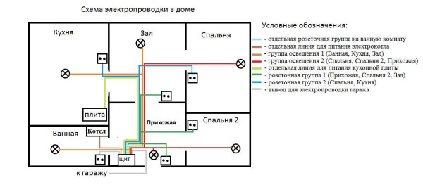 Типовая схема электропроводки частного дома: групп может быть много разных