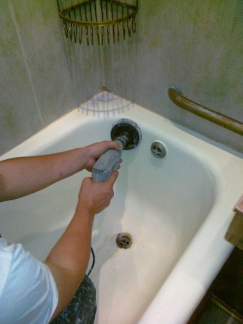 Если под рукой ни дрели, ни болгарки – можно воспользоваться шлифовальным бруском или даже куском шкурки, наклеенным на деревянную рукоятку. Если вы впервые занялись таким непростым делом как эмалировка ванн — видео, прилагающееся к данной статье, поможет вам разобраться в технологии шлифовки.