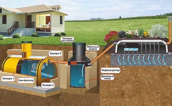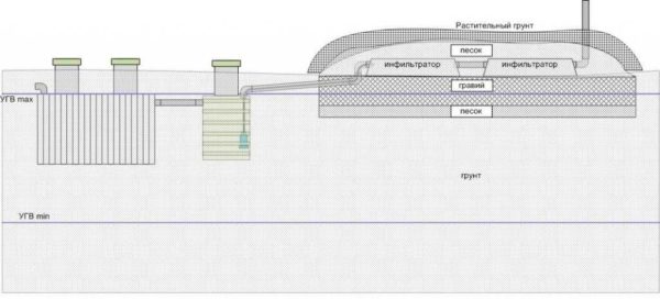Пример организации канализации при высоком УГВ