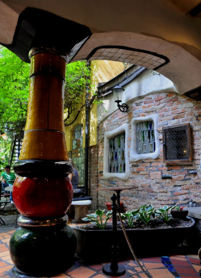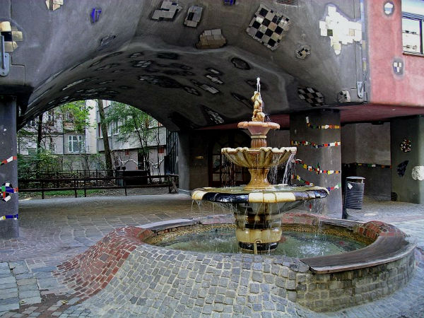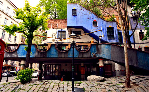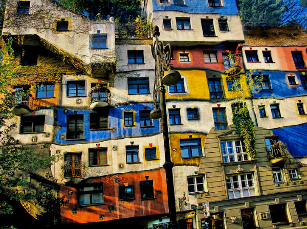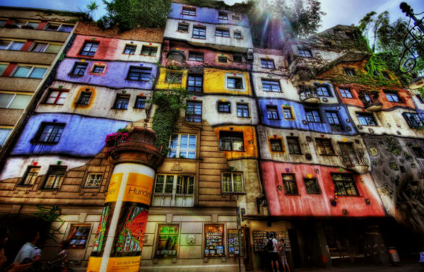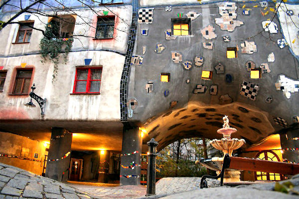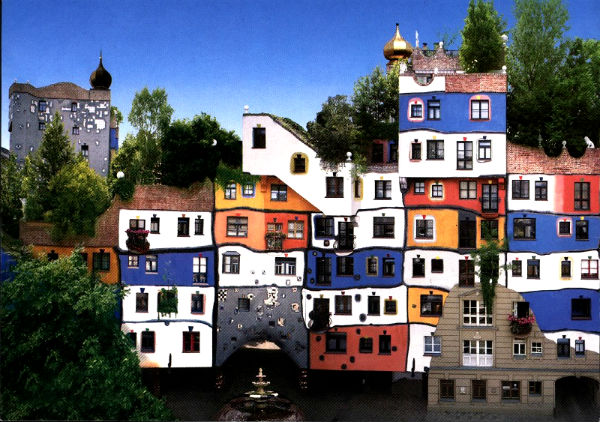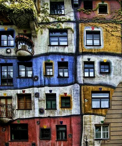 Дом  Хундертвассера  был возведен в период начиная с 1983 года и закончен в 1985 году. И если Вы думаете, что цветастый фасад – это и есть нестандартность мышления автора, то глубоко ошибаетесь. Обратите внимание на окна, архитектор официально заявил, что у этого дома нет идентичных друг другу окон – они все разные. Кроме того изначально, автор планировал внутри здания уложить холмистые полы, но потом отказался от этой идеи, практичность все же пересилила внезапный порыв творчества, правда во внутреннем дворике он все же воссоздал эффект холмистости, покрыв двор плиткой. И не отказался от идеи воссоздать нарочитую внешнюю кривизну линий на фасаде здания, именно поэтому со стороны, кажется, будто данный дом возвел любитель.