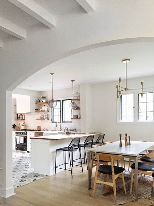 Разумеется, есть случаи, когда аркой обойти не удастся. Например, когда нужно не пропустить в соседнюю комнату запахи или звуки. К примеру, отделить аркой кухню от гостиной можно только при наличии очень сильной вытяжки, иначе все кухонные ароматы будут мешать Вам и Вашим гостям. А вот в случае со столовой это может быть даже уместно.
