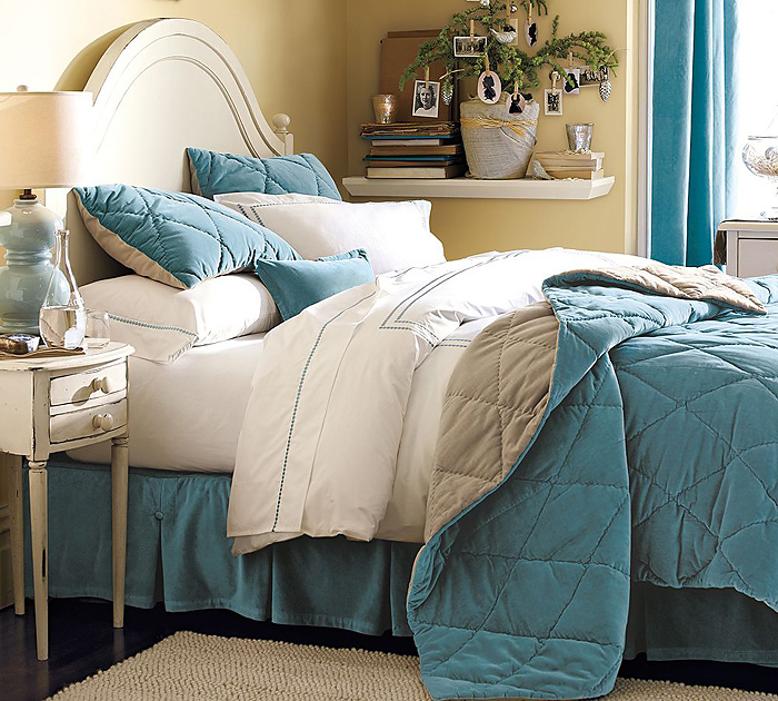 Это сочетание можно назвать самым природным и выразительным. Голубой, синий, бирюзовый — это цвета воды и неба. Бежевый, коричневый — это оттенки песка и земли. Жаркий песок и почти прозрачное небо — самый любимый летний пейзаж. Поэтому нам комфортно находиться в интерьерах выполненных в таком сочетании цветов. Большинство из показанных интерьеров — спальни, где как ни на отдыхе мы можем хорошо отдохнуть и расслабиться. Цветовая гамм очень способствует этому.