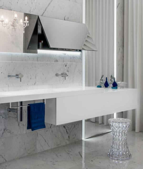 С появлением встраиваемых и светодиодных светильников освещение начинает играть все большую и большую роль в дизайне интерьеров. Комбинирование точечного освещения с акцентирующим или художественным светом придаст вашей ванной более динамичный вид и даже поможет визуально увеличить ее объем.