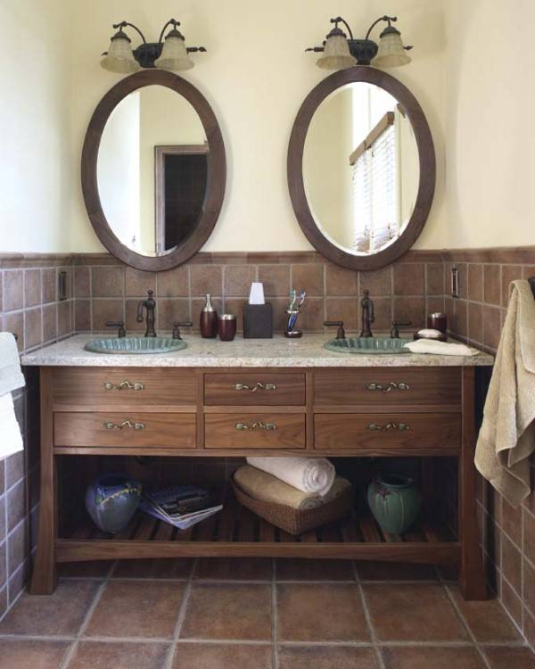 Эксклюзивные дизайнерские тумбы или же отреставрированная старая мебель — значения не имеет. Идея заключается в том, чтобы ваш уголок для наведения красоты обращал на себя внимание. Так, модные навесные полки придают ванной комнате элегантность и заставляют ее казаться более просторной, тогда как старинная отреставрированная мебель может внести в интерьер настоящий шик и создать уют.