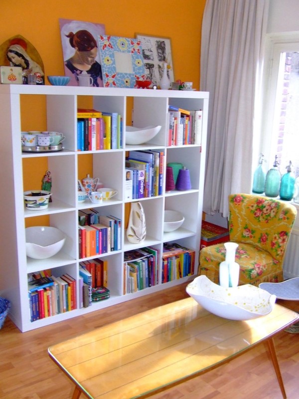Если у вас есть большая коллекция книг, видеокассет или любого другого декора, то вам может понравиться идея организовать их по цвету. Радужный вид книжного шкафа или полок весьма впечатляет!