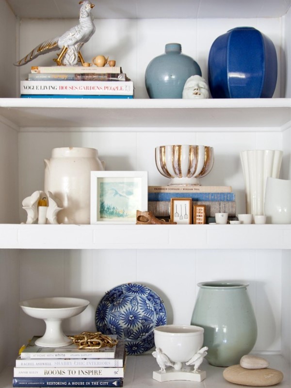Один из излюбленных дизайнерских приемов! Оформляйте шкаф или настенные полки, группируя предметы по темам, цветам, формам, текстурам или материалам, и тогда эти вещи принесут вам наибольшую отдачу. Например, группа белого и матового декора будет просто потрясающе выглядеть на темном дереве или ярко окрашенных полках, в то время как декор с разноцветными узорами сможет красиво оживить спокойные светлые стены и мебель.
