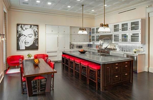 До недавних пор актриса, комедиантка и телеведущая Келли Рипа обладала просто исключительно стильной кухней с красными акцентами и огромным портретом Мэрилин Монро.
