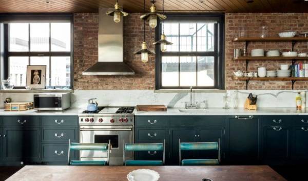 Стиль лофт в интерьере пользуется спросом даже у звезд! Кирстен Данст платит $ 12 500 в месяц за этот пентхаус в Сохо. Кухня, оформленная в стиле лофт, отличается кирпичными стенами, мраморными столешницами и сверкающей металлической техникой.