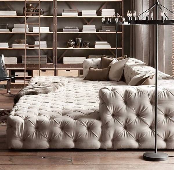 3. Огромный диван для гостиной, позволяющий провести марафон фильмов с повышенными удобствами. Единственный минус — он не складывается, а потому подходит только для просторного дома.