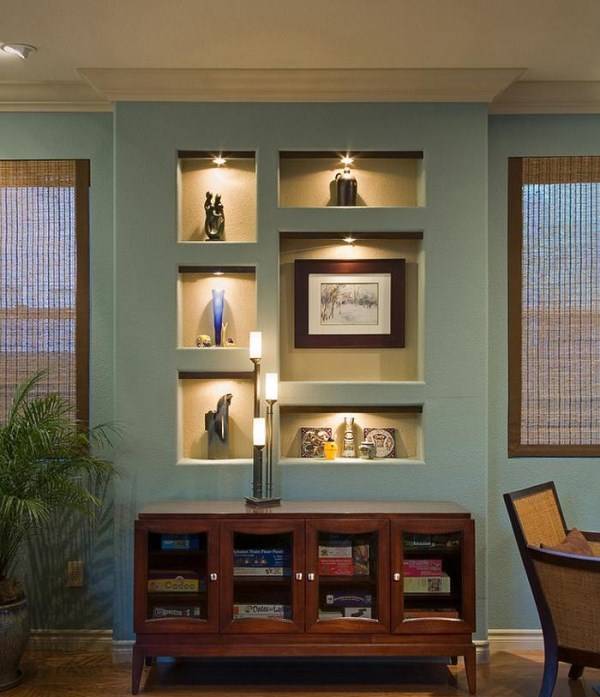 Встроенные светильники традиционно применяются для дополнительного освещения комнат. В то же время мало кто знает, что они могут играть главную роль в зонировании пространства и его архитектурном преображении. Например, подсветка многоуровневых потолков, пола и плинтусов, настенных полок и ниш дает порой просто сногсшибательный эффект, тогда как в комнатах с темными стенами встроенные светильники создают интимную и даже мистическую атмосферу.