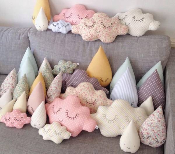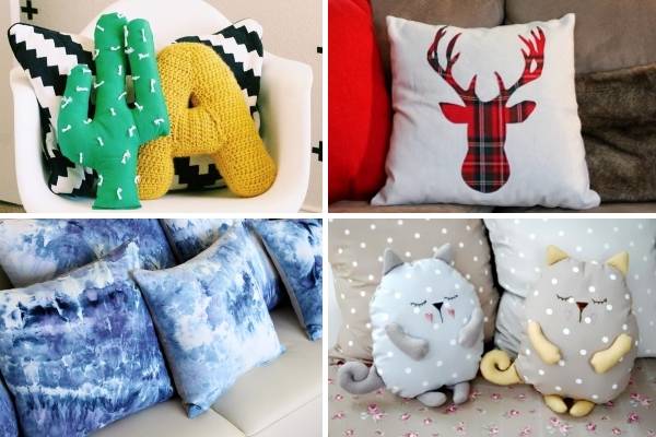 Последняя часть фотографий в этой статье наглядно покажет вам, как можно сшить подушки на диван. Убедитесь, что при наличии швейной машинки, богатой фантазии или готовой выкройки, также можно создавать потрясающие декоративные диванные подушки, которых не найти в обычном магазине. А еще этот способ подходит тем, кто не хочет тратиться на новые подушки, а желает лишь заменить наволочки на старых или замаскировать пятно. Смотрите фото!