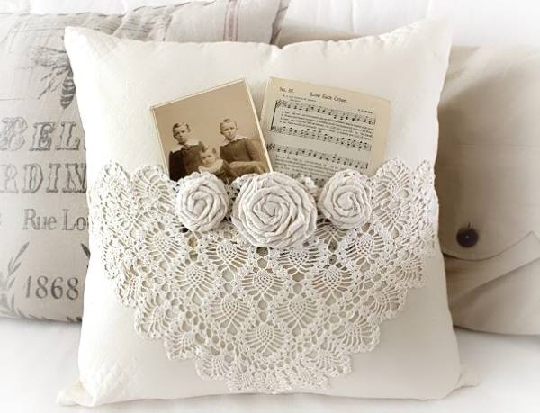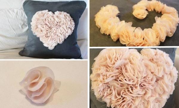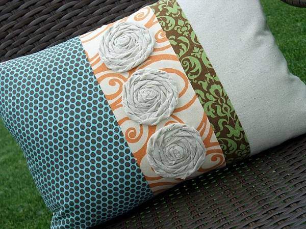 • Декорирование подушек с применением вышивки, пуговиц, кусочков ткани и т. д.