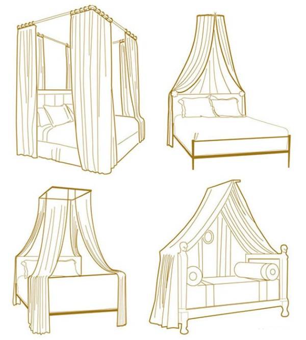 Впервые созданный как функциональное дополнение к кровати, балдахин постепенно превратился в скорее декоративный элемент спальни, который свидетельствует о богатстве и утонченности вкуса своего хозяина. Поэтому, если первые балдахины изготавливали из плотной ткани (например, из бархата), чтобы защищать спящих людей от холода, света и шума, то в современных спальнях мы, как правило, видим легкие тюлевые занавески, предназначенные создавать уютную, романтическую и одухотворенную атмосферу.