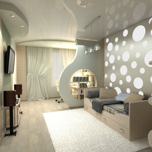 Сейчас в моде открытые и просторные помещения. Связи с этим необходимо правильно распределить зонирование комнаты. Например, на рабочую зону и на зону отдыха (кухня — гостиная, гостиная и спальня). Особенно это решение актуально для однокомнатных квартир и студий. Зонировать помещение можно при помощи освещения (где в прямом смысле можно включать и выключать зоны). Также часто применяют цветовые разделения (Например: кухня — желтая, гостиная — зеленая и так далее).
