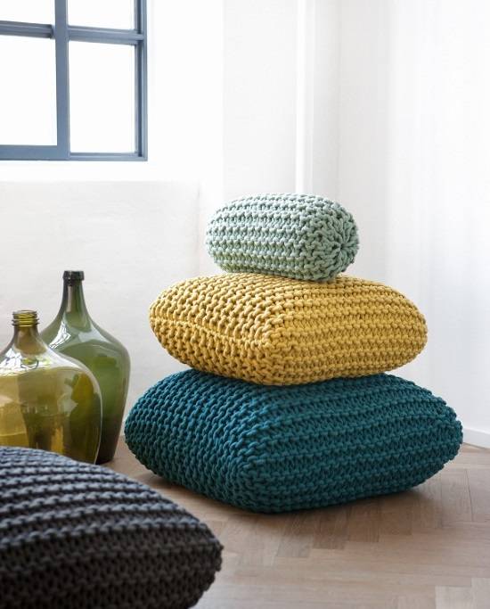 Крупные вязанные текстуры стали одними из фаворитов популярной выставки Maison & Objet, проходившей с 23 по 27 января в Париже. Обзаведитесь вязаным пуфиком, подушкой, абажуром или пледом, чтобы обновить дизайн интерьера с ноткой деревенского уюта и тепла!