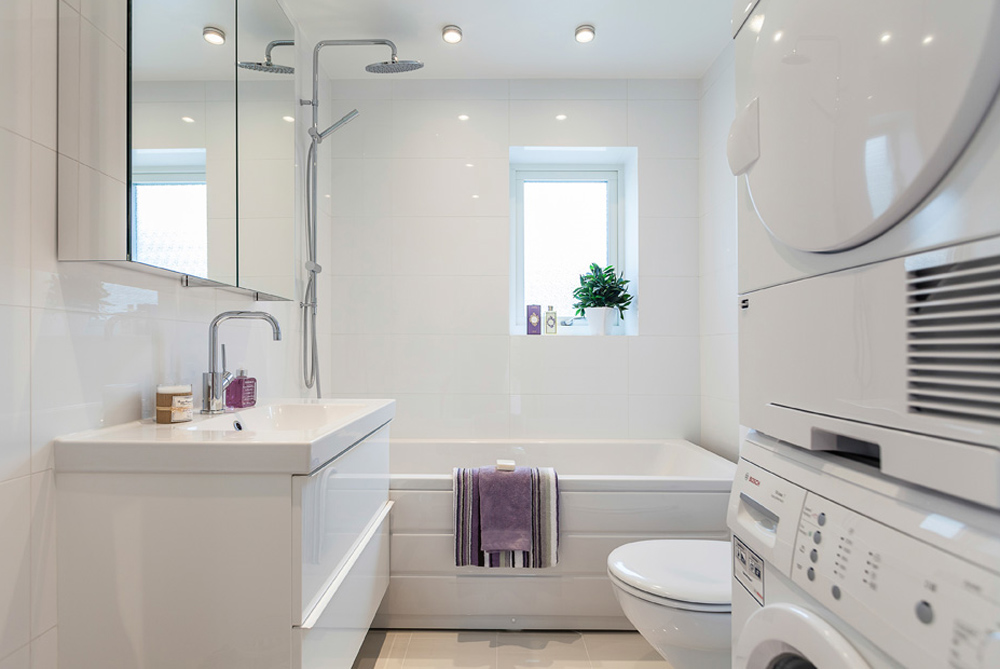 Для достижения максимально эффекта, следует отдать предпочтение компактным элементам сантехнического оборудования, не следует заострять внимание на стандартных размерах ванной, раковины и унитаза. При этом рекомендовано рассмотреть вариант совмещенной ванны с умывальником или душем.