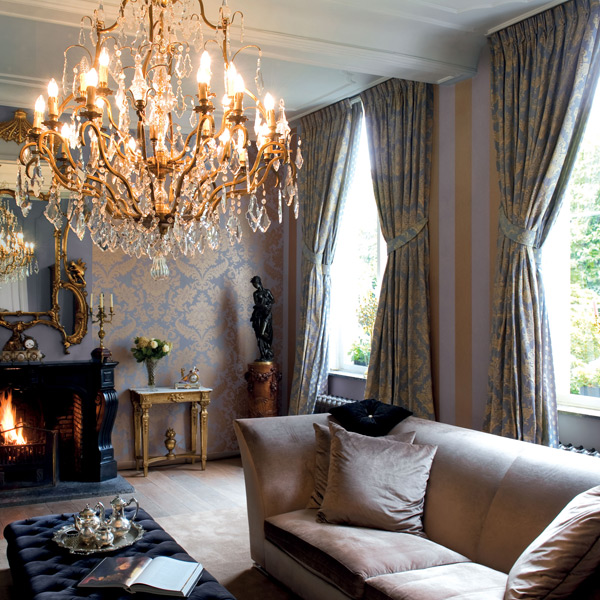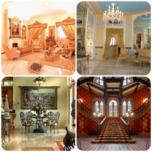 Классические формы, натуральные материалы, дорогостоящие предметы под стиль ренессанс, например, венецианское стекло. Замечательно смотрятся драпировки, ламбрекены, необычные светильники, скульптуры, старинные картины.