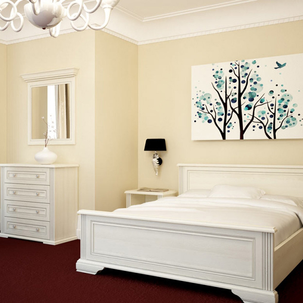 Нейтральный цвет общего фона спальни — оптимальный вариант. При этом оттенки должны быть теплыми для создания большего комфорта. Преобладание белых предметов создает воздушность и легкость.