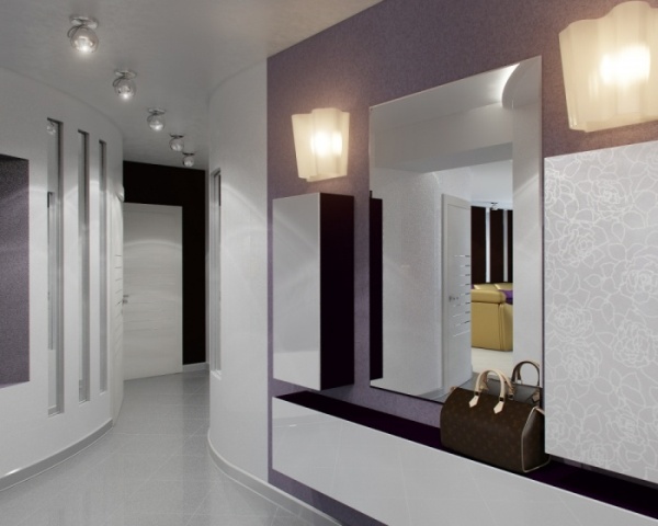 Благодаря дизайнерским приемам, можно зрительно увеличить коридор, оформив его в светлых тонах. Еще «увеличивает» пространство освещение. Поскольку в прихожую практически не попадает дневной свет, это помещение требует достаточно яркого освещения. Зеркальные поверхности также помогут «раздвинуть» стены.