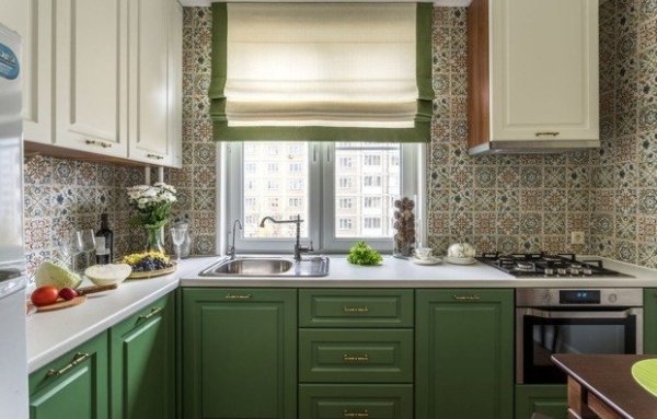 - Окно и пространство вокруг него — стена с окном часто вызывает большие сложности на кухне. Для начала стоит отказаться от штор до пола и заменить их на что-нибудь другое (жалюзи, римская или рулонная штора). Вместо подоконника можно сделать столешницу. По обеим сторонам от окна некоторые размещают узкие полки для хранения. В последнее время дизайнеры советуют размещать у окна раковину. Так увеличивается рабочее пространство.