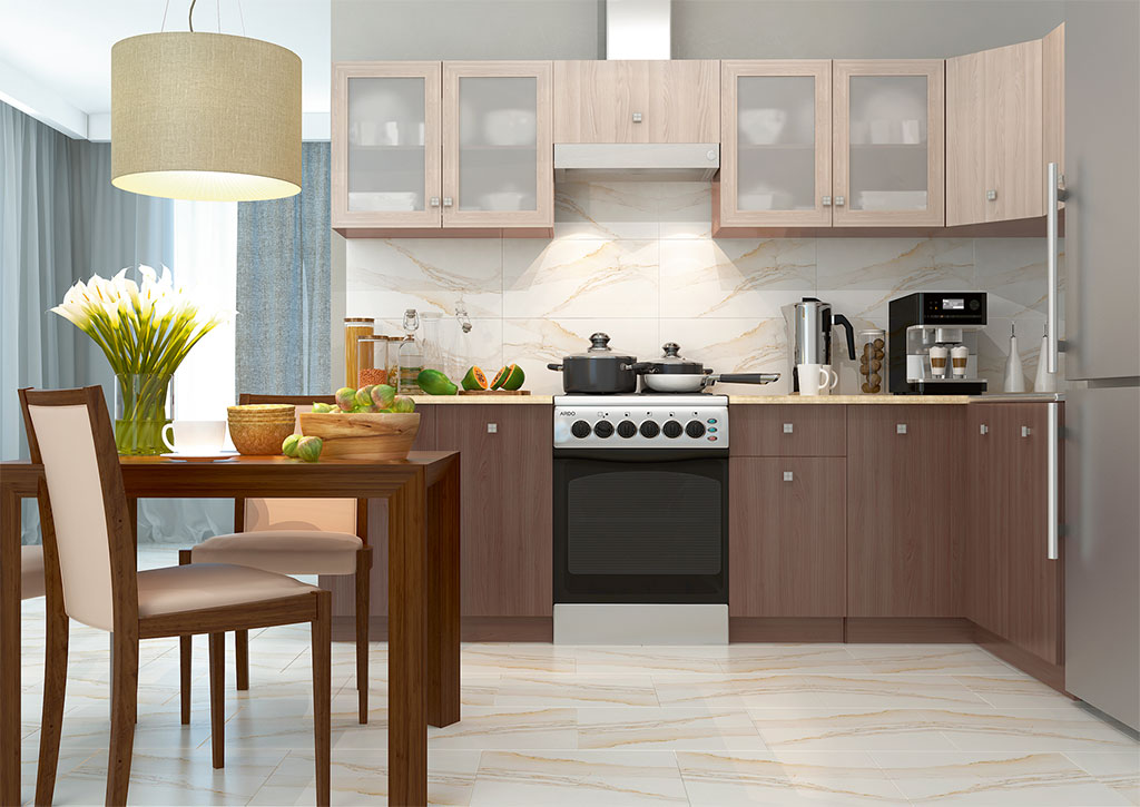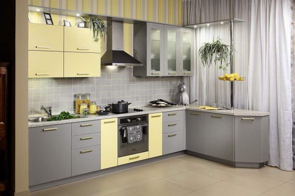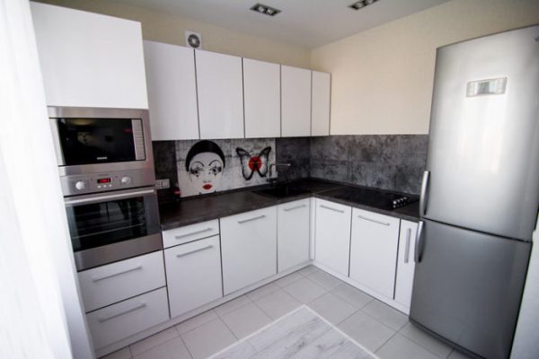 Практичной и зарекомендовавшей себя можно назвать Г-образную расстановку, но и линейный вариант так же неплох. В первом случае размещение гарнитуры компактное, удобное, а самое главное, функциональное. Данный способ дает возможность свободно передвигаться по рабочей зоне. Во втором варианте есть проблема с расположением плиты и холодильника, но этот вопрос можно решить.