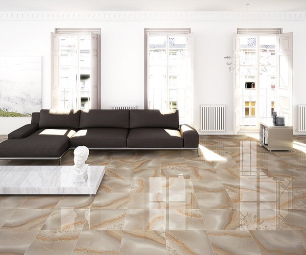 Несмотря на то, что керамогранит зачастую используется для фасадной облицовки и мощения тротуарных дорожек, он все чаще появляется в оформлении квартирных интерьеров в качестве настенного и напольного покрытия. Это обусловлено его характеристиками: влагостойкость, устойчивость к механическому и химическому воздействию, прочность. Применяя данный материал для покрытия пола, можно быть уверенным в том, что осевшая пыль и грязь останутся практически незаметными.