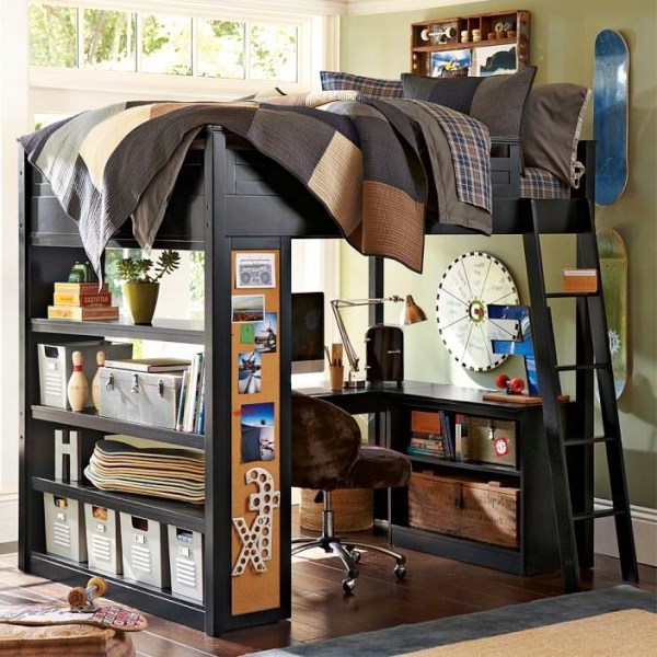 Главное дать ребенку место, где он сможет заниматься ну только учебой, но и своими личными делами. Ведь очень важно, чтобы у каждого человека было личное пространство, где он сможет заниматься чем угодно. И тогда отличным выбором для вашего ребенка будет двухъярусная кровать с рабочей зоной и тумбочкой. Сверху располагается спальное место, а снизу рабочий стол с книжными полками и тумбочкой. Вы сможете не только сэкономите пространство, но и дадите своему ребенку место, где он сможет спокойной заниматься учебой.