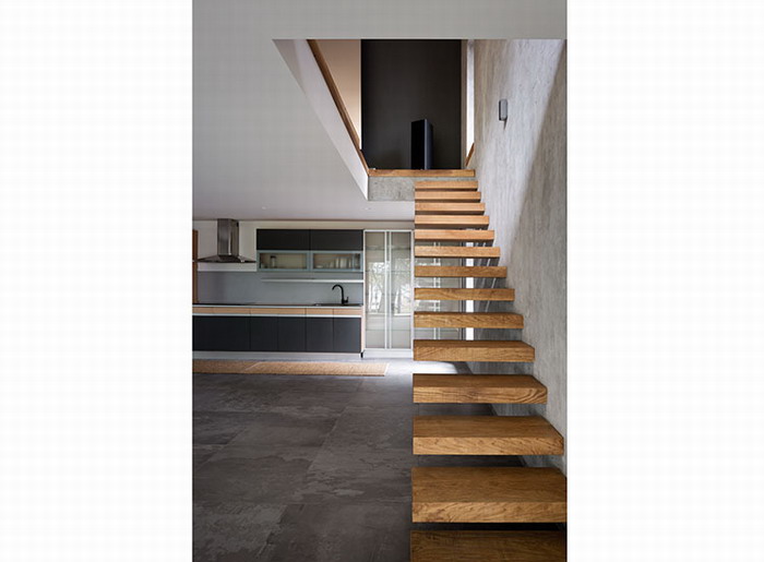 На второй этаж ведет минималистичная консольная лестница