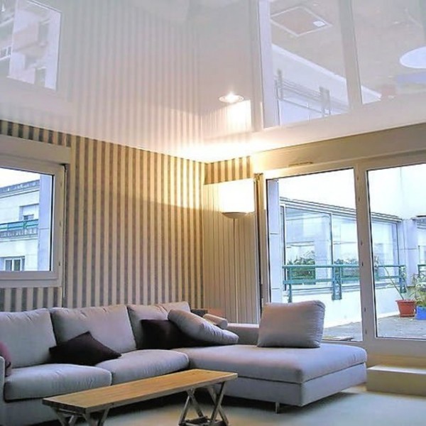 Зрительно поднять потолок может и отделочный материал с зеркальным или полузеркальным эффектом, в котором отразится обстановка помещения и будет отражаться солнечный свет.