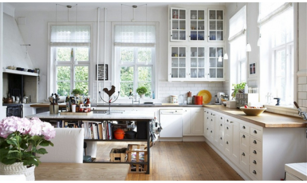 Керамическую плитку на кухне целесообразно укреплять только в зоне фартука или около обеденного стола. Для того чтобы визуально расширить площадь, плитку подбирают светлых оттенков.
