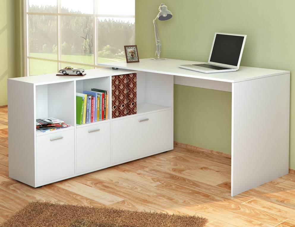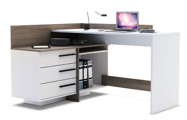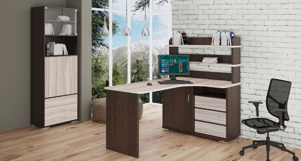 - Планировка стола — угловая, линейная, U-образная. Многие отдают предпочтение линейной планировке, но не во всех помещениях такой вариант можно считать оптимальным. Возможно, в небольшой комнате, загроможденной другими предметами мебели, угловая планировка окажется наиболее подходящей. А ценители эргономичности рабочего места, безусловно, предпочтут U-образную планировку;
